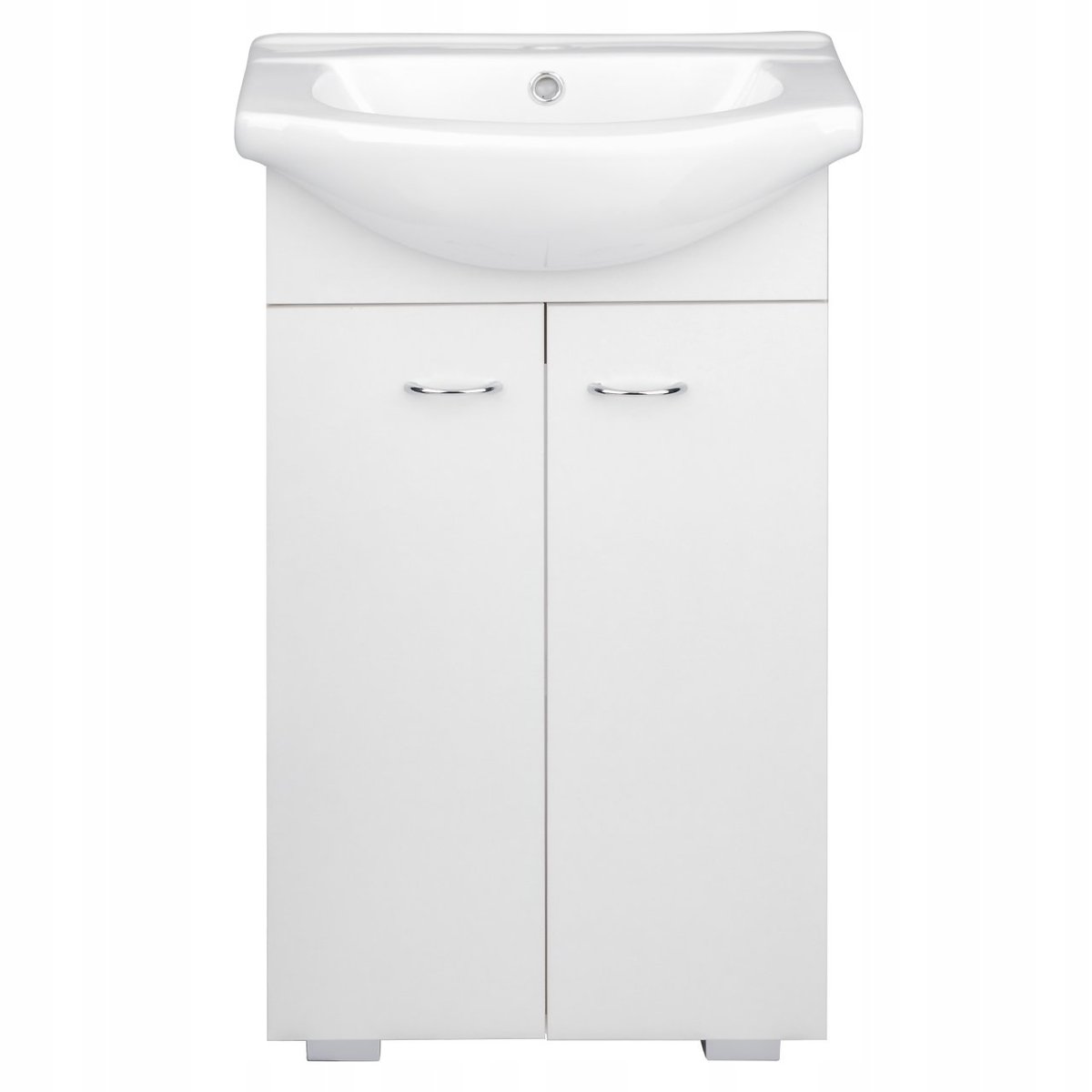 Szafka łazienkowa 50 stojąca z umywalką, syfonem i baterią TIM W skład zestawu wchodzą: umywalka 50 szafka pod umywalkę 50 korek gumowy syfon umywalkowy 50mm bateria jednouchwytowa (długość wylewki ...
