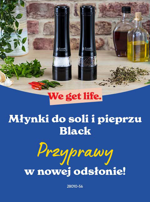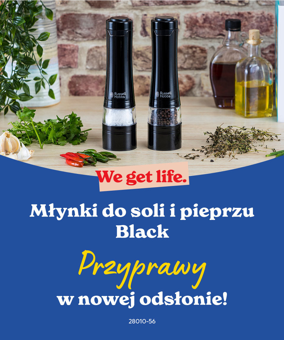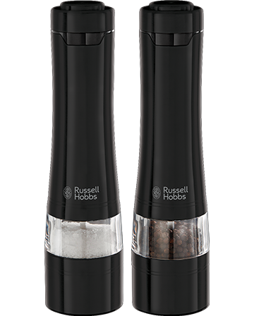 Czarna, gładka obudowa, która mieści się w dłoni i za jednym przyciskiem zmienia kulki pieprzu, grudki soli i fragmenty ziół w drobny proszek – to wszystko zasługa młynków elektrycznych Russell Hobbs! Ten prosty podwójny zestaw pozwoli Ci nasypać do środka ulubione i najczęściej używane przyprawy i rozdrabniać je bezpośrednio na talerzu – tak, by uwolniły skrywany w sobie bukiet aromatów!