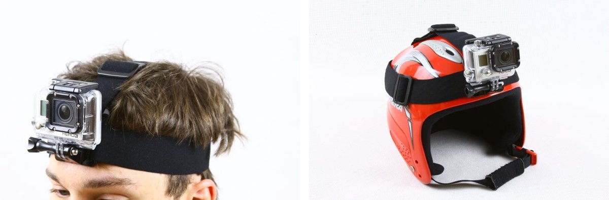 Uchwyt na kask / głowę pozwala na bardzo stabilne zamocowanie kamer GoPro na kasku, czapce lub bezpośrednio na głowie.