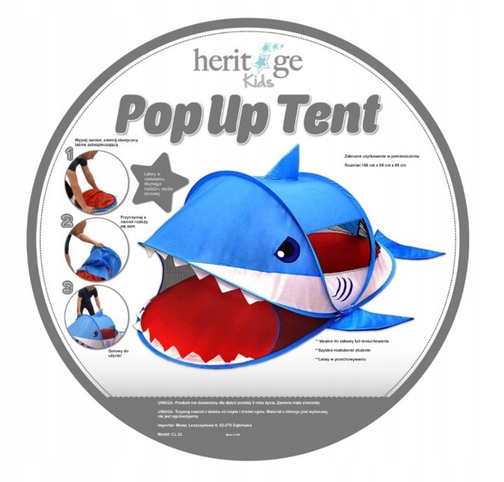 ➡️NAMIOT DZIECIĘCY SAMOROZKŁADAJĄCY - POP UP REKIN Kolorowy namiot dla dzieci to wspaniała, bezpieczna zabawa dla ...