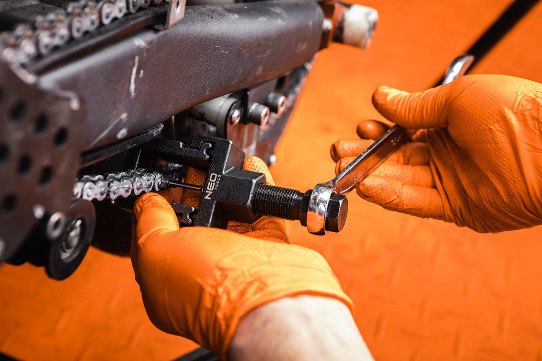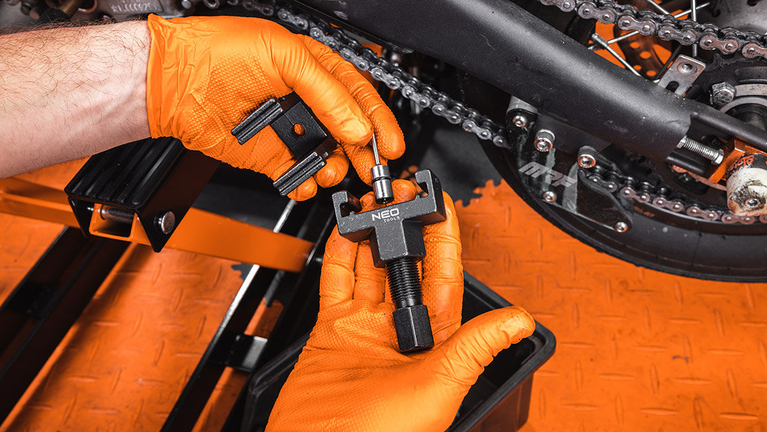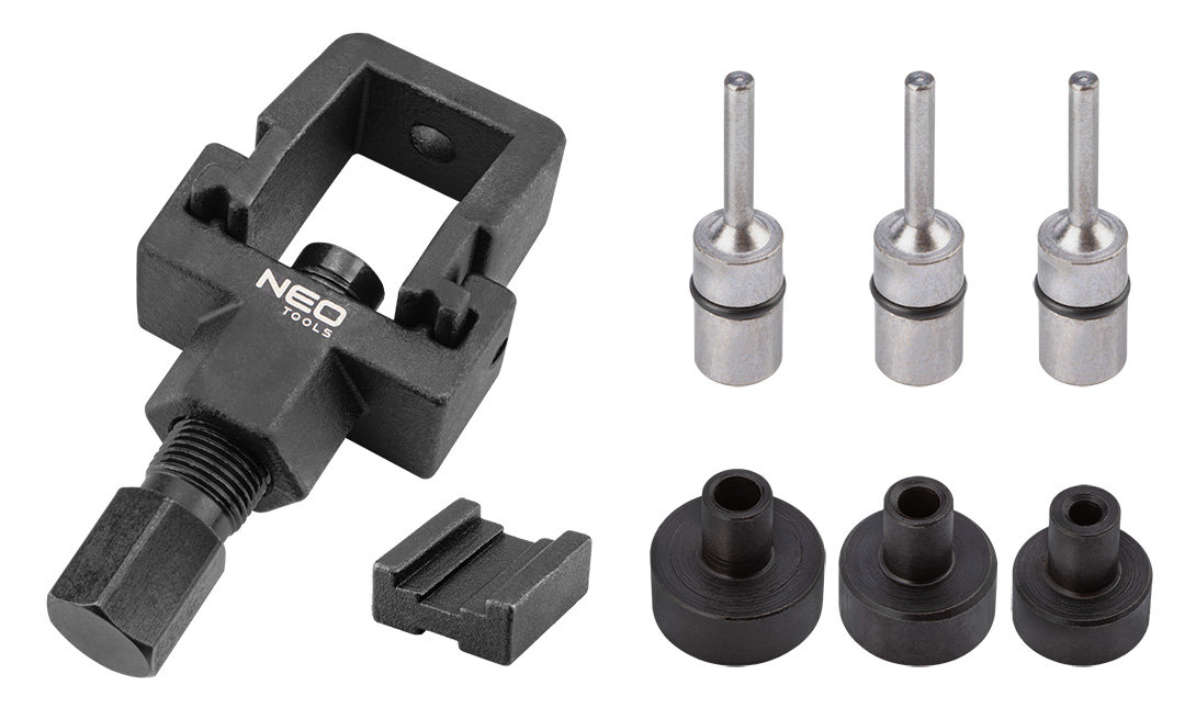Zestaw narzędzi do zakuwania i rozkuwania łańcucha 10-505 marki NEO to komplet narzędzi motocyklowych, przeznaczony do zakuwania i rozkuwania łańcucha HEAVY DUTY. Przystosowany jest szczególnie do łańcuchów: 520, 525, 530, 532. Polecany dla profesjonalistów i majsterkowiczów.