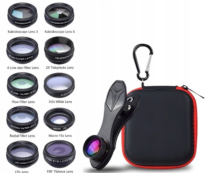 Zestaw zawiera również obiektywy z filtrami CPL, gwiezdnym i kalejdoskopowymi, które oferują nieograniczone możliwości kreowania atmosfery na Twoich zdjęciach. Filtr CPL zmniejsza odbicia i poprawia nasycenie kolorów, idealny do zdjęć wody i nieba. Filtr gwiezdny zmienia punktowe źródła światła w gwiezdne rozblaski, natomiast obiektywy kalejdoskopowe wprowadzają artystyczny wymiar powtórzeń do Twoich fotografii, oferując niezwykłe efekty wizualne i wzory.