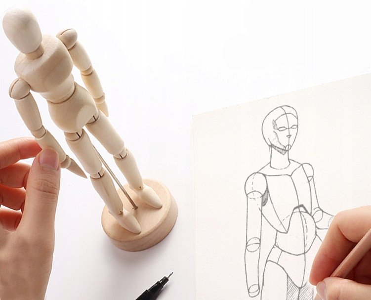 Do zestawu dołączony jest drewniany ludzik, dzięki któremu można realistycznie odwzorować kształt człowieka podczas szkicowania.
