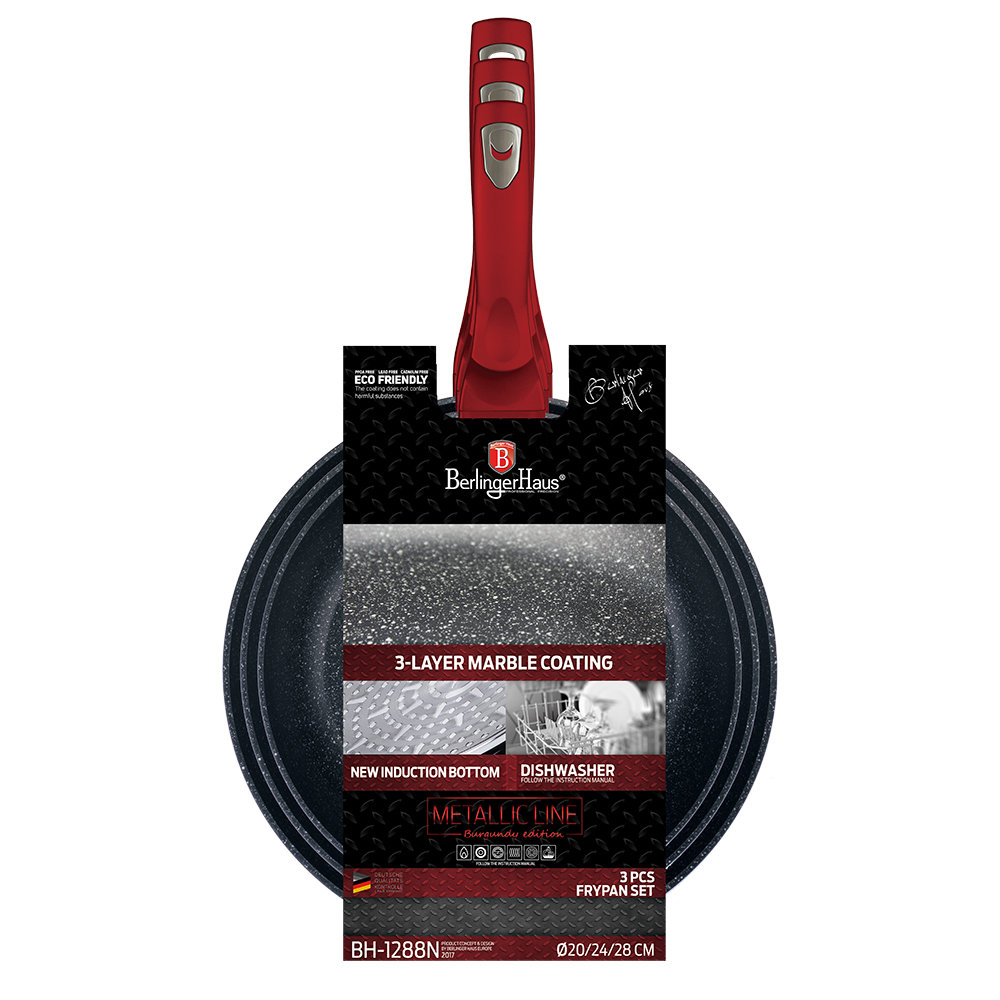 | Nazwa: | Zestaw patelni Berlinger Haus Metallic Touch I, czerwony, 3 elementy, BH/1288 |