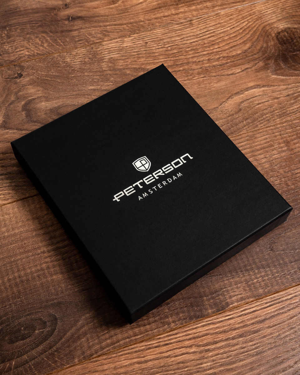 Zestaw Peterson został zapakowany w eleganckie, firmowe pudełko, które już na pierwszy rzut oka robi wrażenie. Minimalistyczna forma i głęboka czerń opakowania sprawiają, że całość prezentuje się luksusowo i profesjonalnie. Taki komplet to świetny pomysł na prezent biznesowy, świąteczny lub urodzinowy, który zachwyci zarówno estetów, jak i osoby praktyczne. Niezależnie od okazji – ten zestaw to upominek z klasą, gotowy do wręczenia bez potrzeby dodatkowego pakowania.