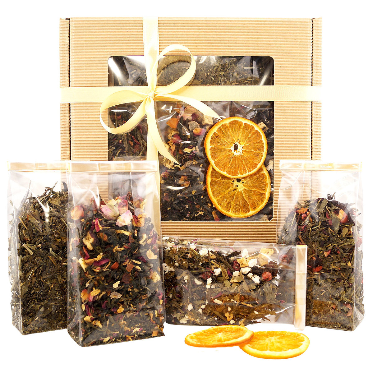 📜 Nasz elegancki zestaw herbat zawiera cztery wyjątkowe mieszanki, zapakowane w pudełko z przejrzystym okienkiem, ozdobione kremową wstążką i kokardą. Wymiary pudełka to 22cm*20cm*5cm, a każda mieszanka herbaty znajduje się w przezroczystym opakowaniu po 50 gramów. To idealny wybór dla każdego miłośnika herbaty, który ceni sobie różnorodność i wysoką jakość.