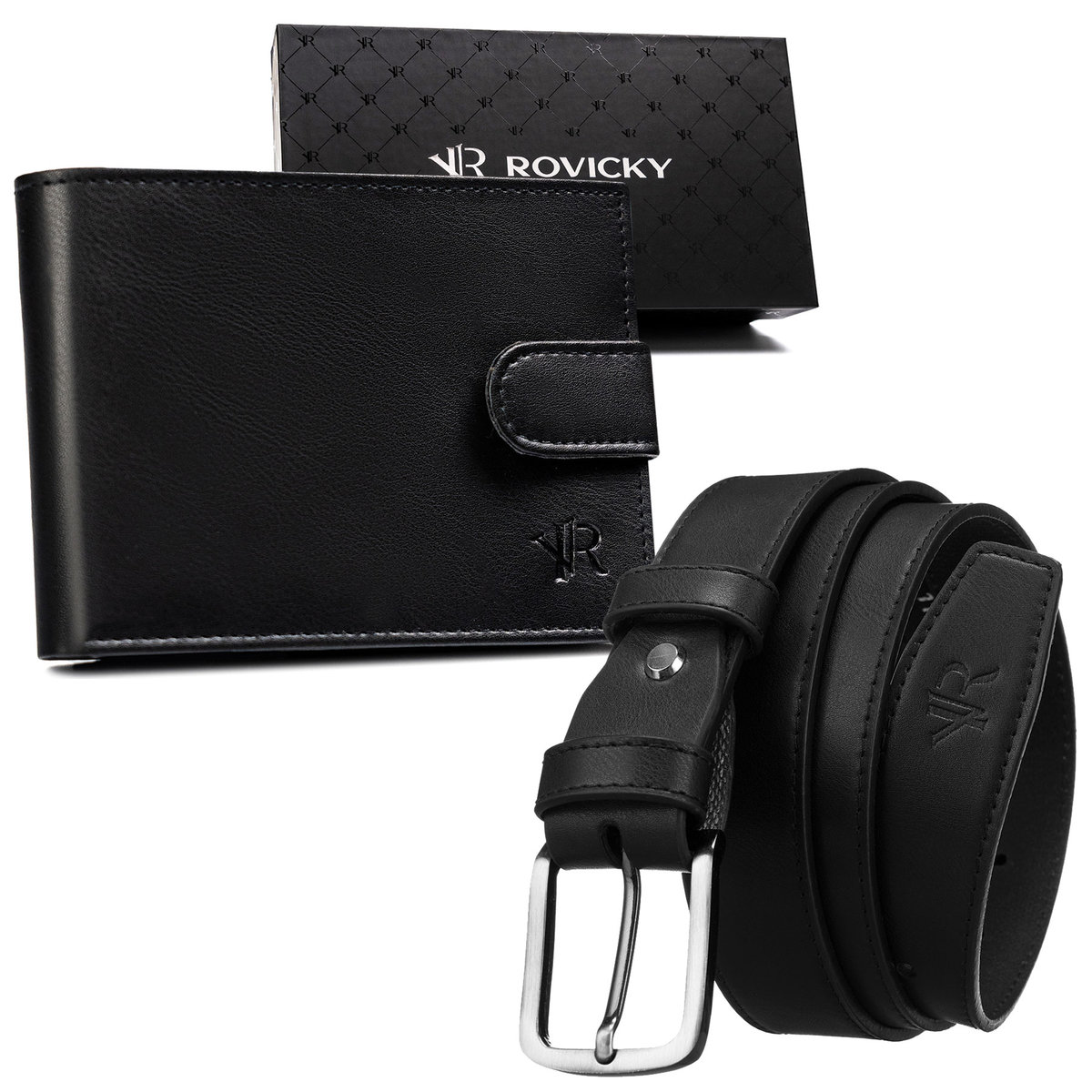 | Nazwa: | Zestaw prezentowy męski duży portfel i pasek 120 skóra ekologiczna Rovicky, czarny |