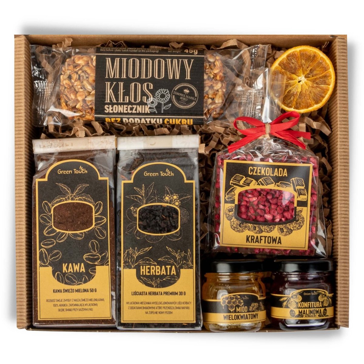 Zestaw prezentowy miód herbata kawa czekolada konfitura baton box prezenty