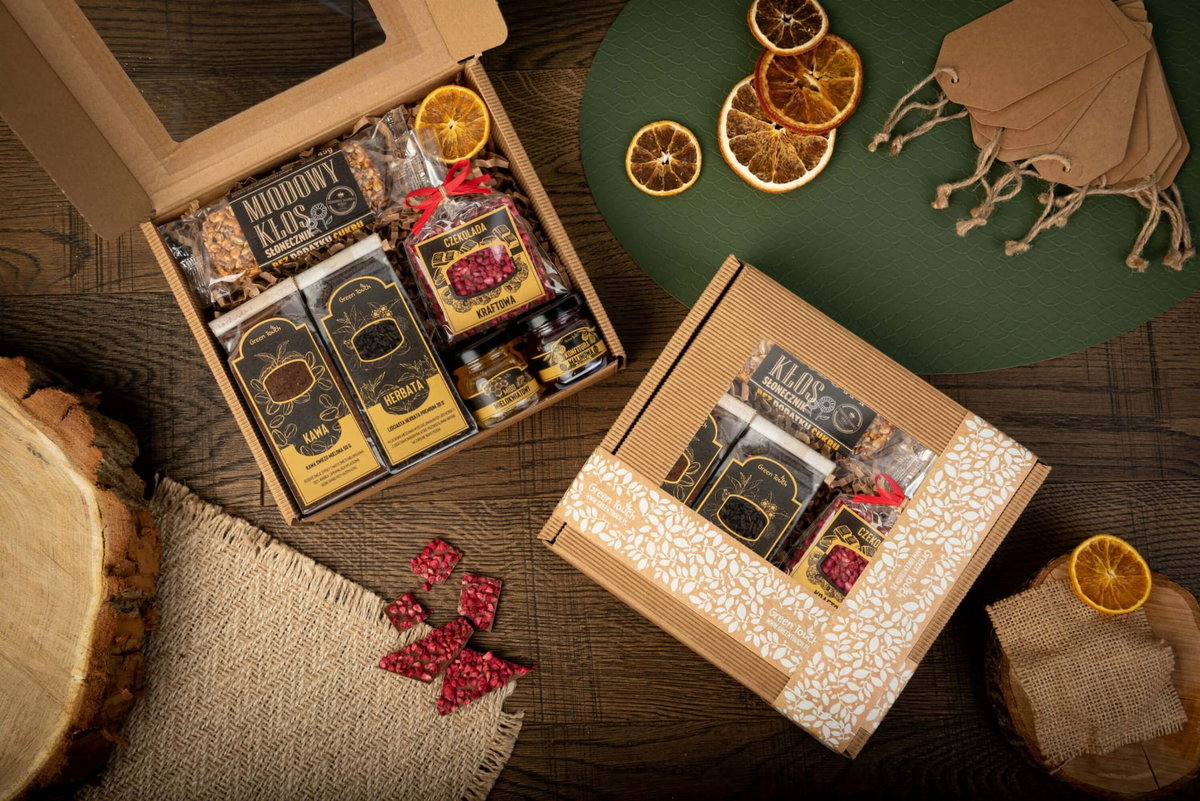 Zestaw prezentowy pełen kraftowych produktów z manufaktur w ciekawej szacie graficznej, prezent doskonały na każdą okazję.