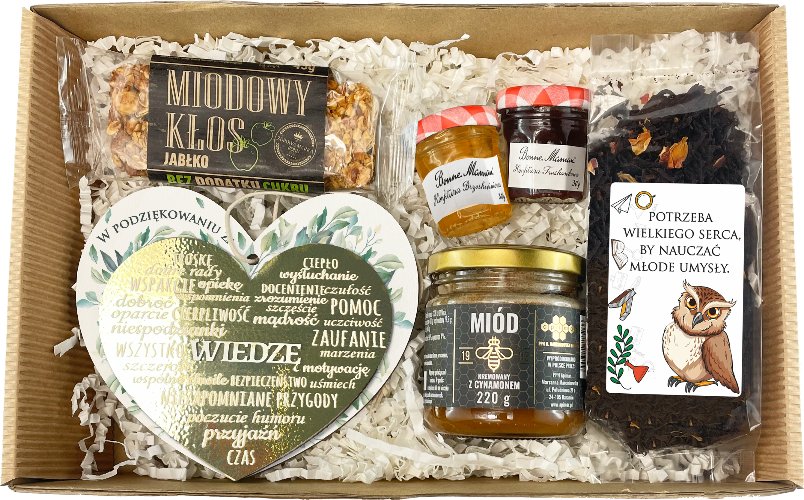 ZESTAW PREZENTOWY PREZENT NA DZIEŃ NAUCZYCIELA MIÓD HERBATA PODZIĘKOWANIE