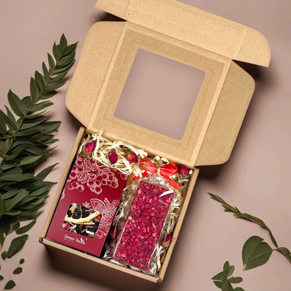 Zestaw prezentowy upominek pudełko z herbatą i czekoladką. Prezent na dzień kobiet na walentynki Doskonały upominek i świetna alternatywa dla popularnych kwiatów. Zestaw herbata z kraftową ...
