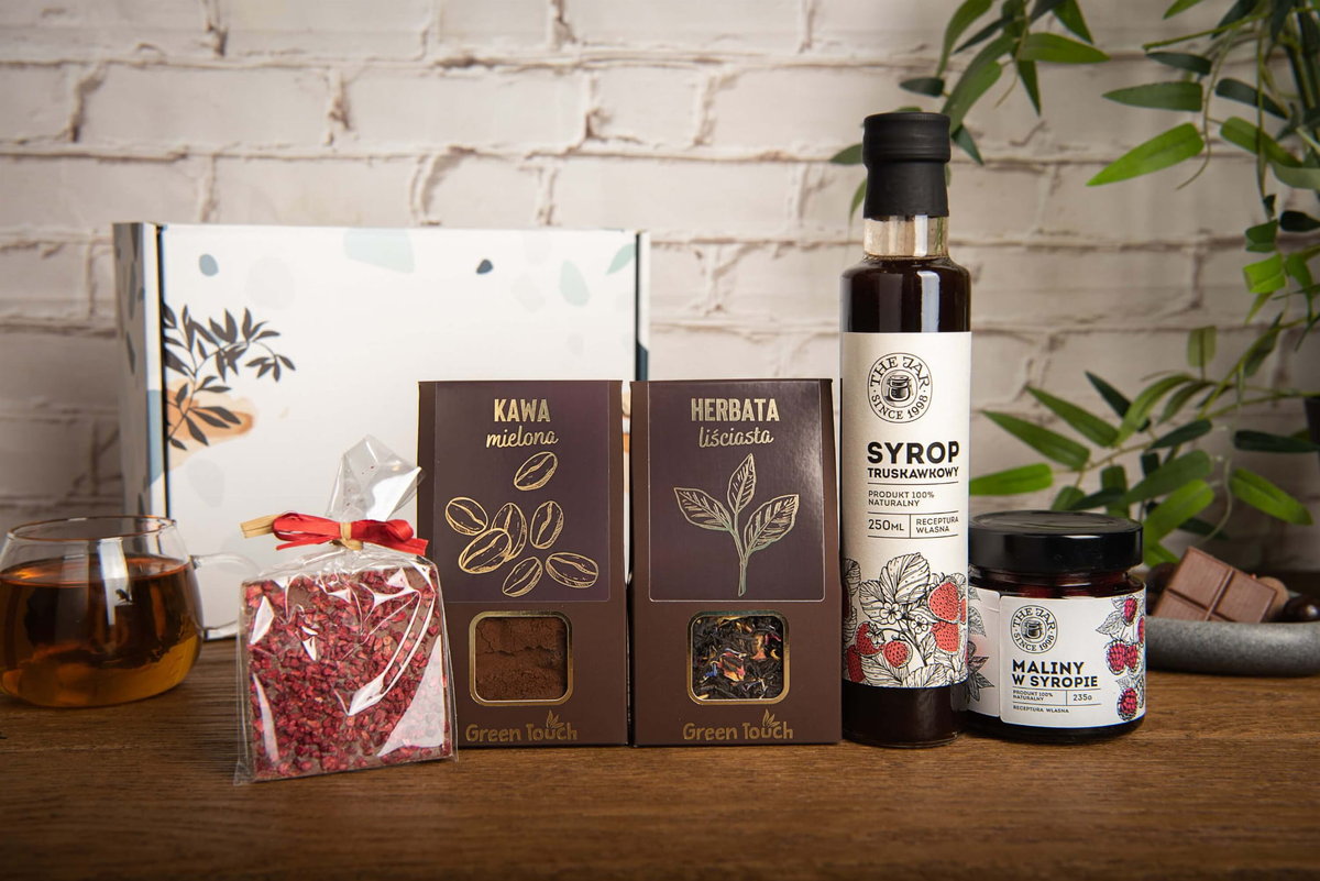 Zestaw prezentowy z herbatą, kawa czekolada syrop i maliny w syropie box Odkryj głębię aromatu czarnej herbaty marki Green Touch oraz wyjątkowość świeżo mielonej kawy 100% arabica. Zachwyć się ...