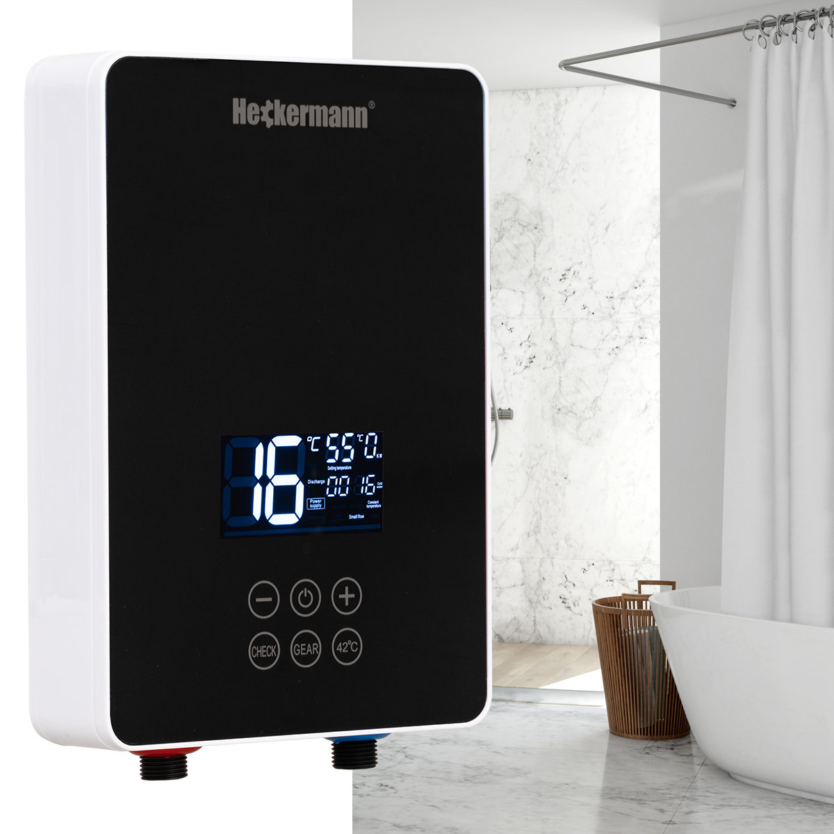 | Nazwa: | Zestaw Przepływowy elektryczny podgrzewacz wody Heckermann SL-X2-60 Czarny + Akcesoria |