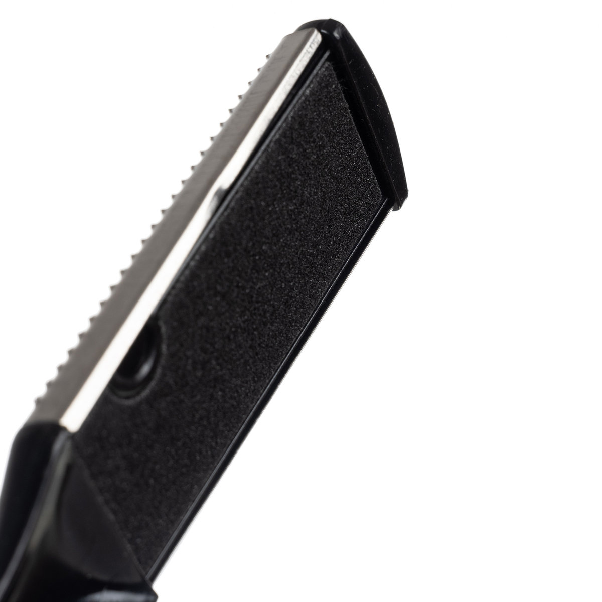 - SPECYFIKACJA - kolor: czarny / srebrny; materiał: stal nierdzewna, pozostałe: PS + pianka EVA + silikon + żelazo + papier ścierny; wymiary: 19 x 7,5 x 4 cm; waga: 269 g; waga w opakowaniu: 307 g.