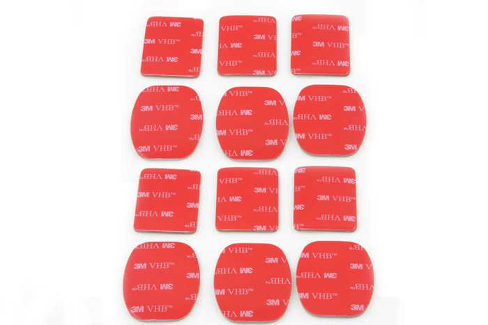 Podkładki przylepne z oryginalnym mocowaniem 3M VHBTM - Uwaga !! na inne zestawy, które sprzedawane są w niższej cenie i posiadają nieoryginalne przylepce, często podrobione, co wpływa istotnie na ich jakość. Oryginalne przylepce 3M posiadają biały napis "3M VHBTM" na czerwonym tle, tak jak te sprzedawane z kamerami GoPro. Nieoryginalne przylepce wykonane są zazwyczaj z przezroczystego materiału i naklejony na nie jest intensywnie czerwony papier. Mimo iż sprzedawcy piszą, że są to oryginalne przylepce 3M, to niestety nie jest to prawda. Warto na to zwrócić uwagę przed zakupem i nie oszczędzać kilku złotych by potem żałować.