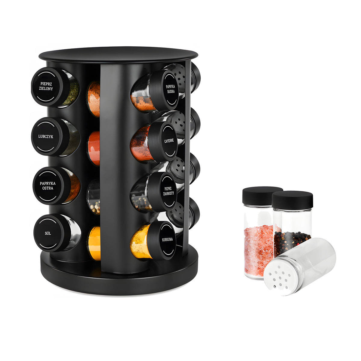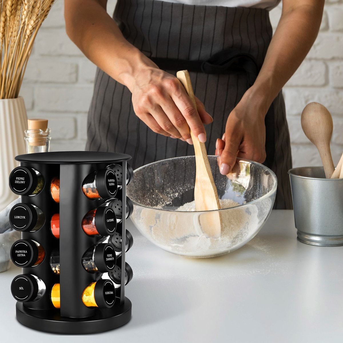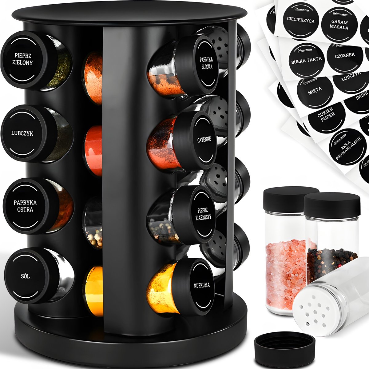 STOJAK NA PRZYRAWY, PRZYPRAWNIK OBROTOWY 16 SZTUK + ETYKIETYFunkcjonalne rozwiązania kuchenne to idealne rozwiązanie dla zabieganych pasjonatów kuchni, którzy cenią sobie porządek.Ten zestaw nie ...