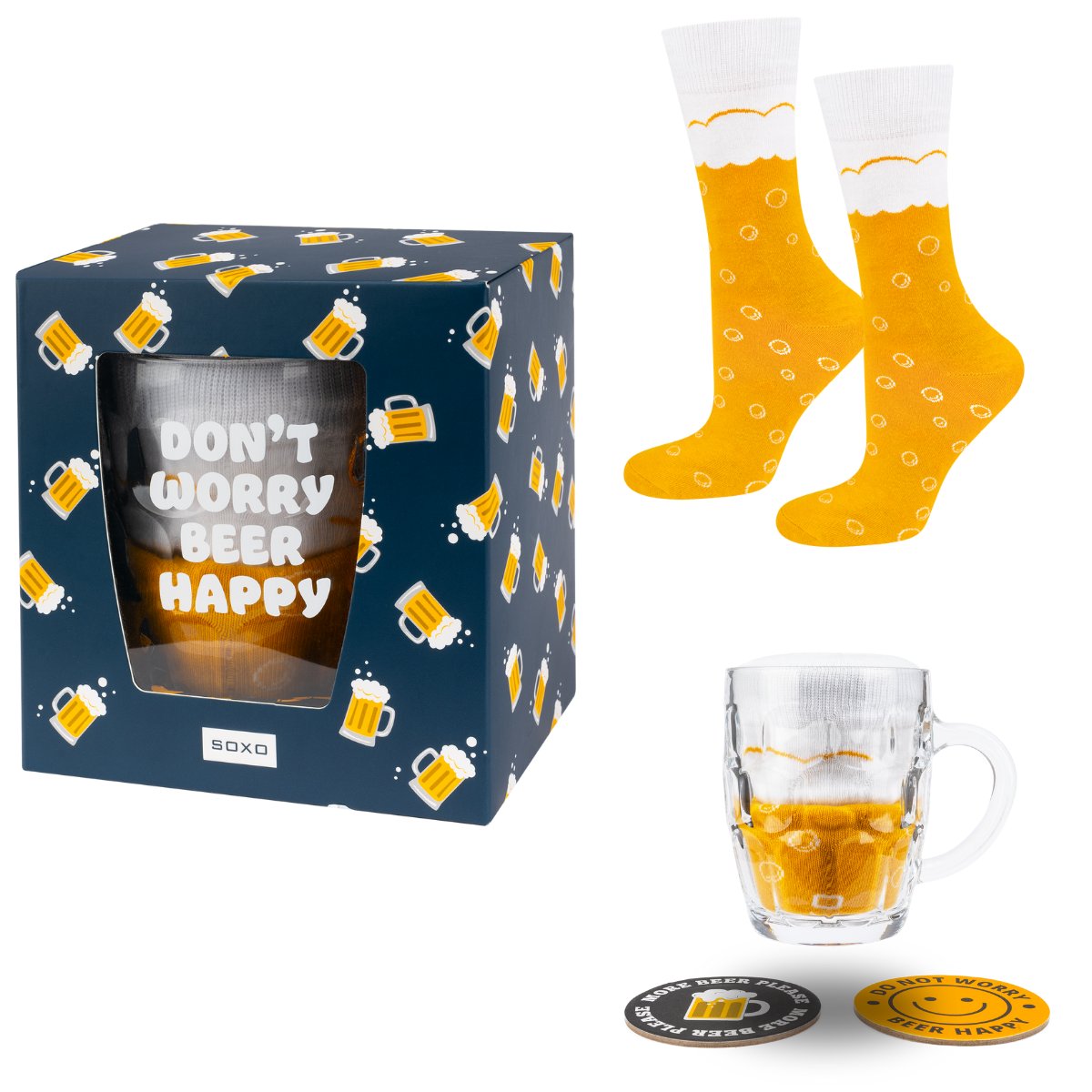 Jeśli szukasz oryginalnego prezentu dla mężczyzny to trafiłeś w odpowiednie miejsce! Zabawny zestaw składający się ze skarpetek w szklanym kuflu piwa wraz z dwiema śmiesznymi podkładkami! To idealny pomysł na prezent, który możesz podarować na wiele okazji !