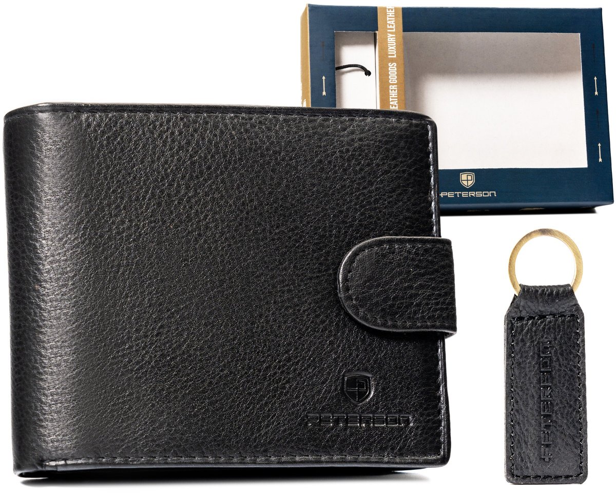 Właśnie zrecenzowałem Zestaw skórzany czarny portfel męski z brelokiem - Peterson