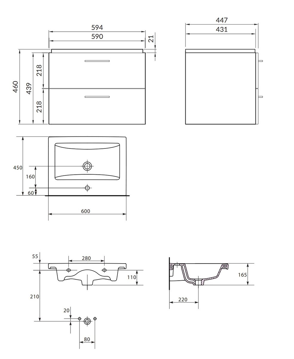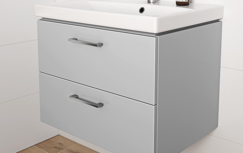 W skład zestawu wchodzą wisząca szafka podumywalkowa LARA SZARA 60 z umywalką COMO 60 Front oraz korpus szafki z płyty wiórowej 16 mm, lakierowanej w kolorze szarym. Szafka posiada dwie pojemne szuflady z cichym domykiem oraz chromowanymi uchwytami. Mebel do samodzielnego montażu.