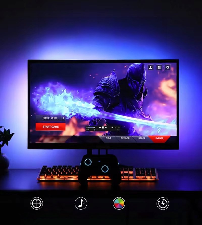 Nasza taśma LED jest synchronizowana z obrazem wyświetlanym na ekranie monitor dzięki czemu dostosowuje kolory diod LED w czasie rzeczywistym.