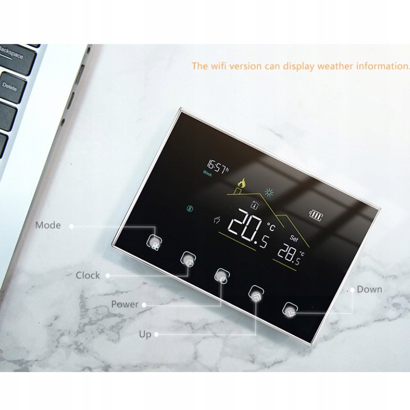 Zdalne sterowanie przez aplikację mobilną lub komputer (WIFI), zarządzaj temperaturą w swoim domu z dowolnego miejsca na świecie.