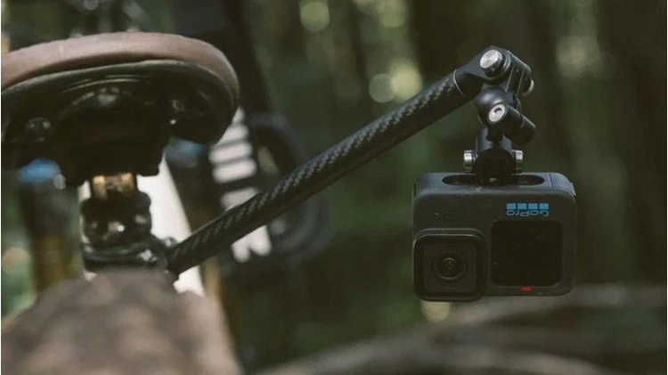 Uchwyt Boom + Bar Mount wyposażony jest w wysięgniki z włókna węglowego, które można z łatwością przymocować do większości okrągłych kierownic i sztyc, aby uzyskać pełnozakresowe ujęcia przedstawiające Cię twarzą w twarz, nagrania z kamery śledzącej lub ujęcia z boku na rowerze. Posiada również zintegrowane punkty obrotowe i uchwyt kamery z przegubem kulowym, który pozwala uzyskać dokładnie taki kąt, jaki chcesz.