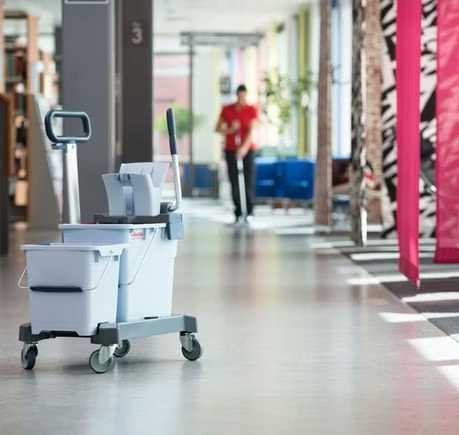 Ten wózek został specjalnie zaprojektowany, aby ułatwić i przyspieszyć proces sprzątania w pomieszczeniach o większej powierzchni.