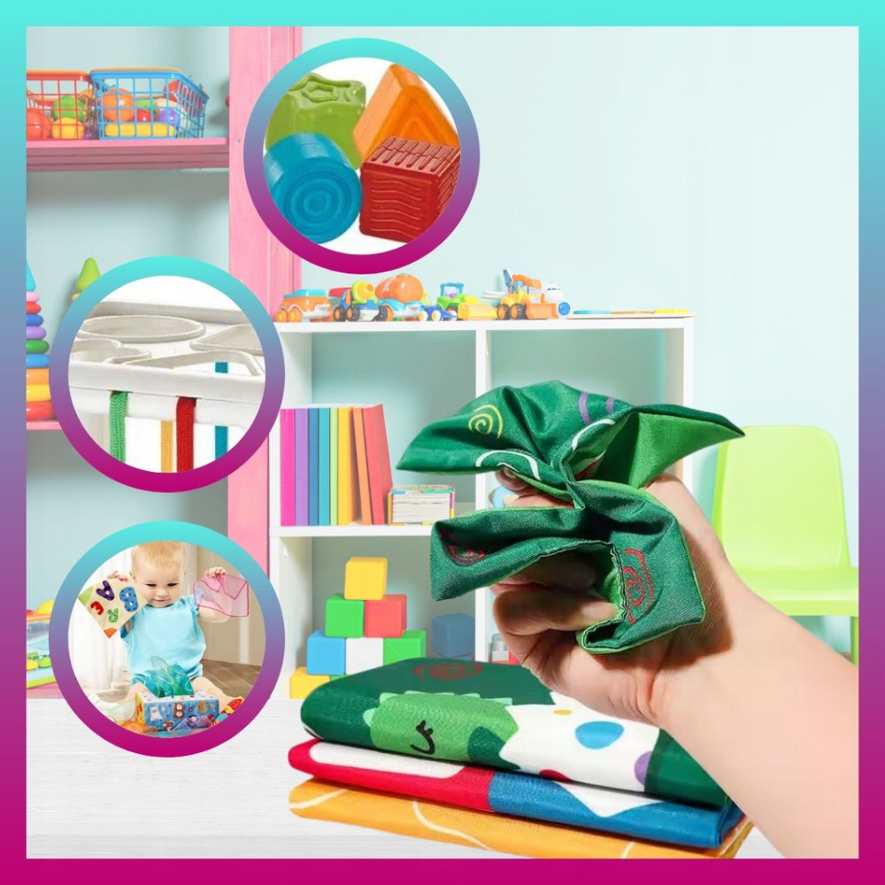 ➡️Kolorowe chusteczki – różnorodne tekstury i wzory pobudzają ciekawość i rozwijają zmysły.