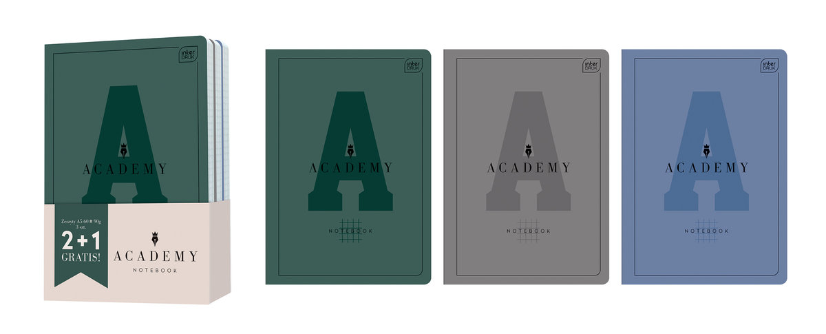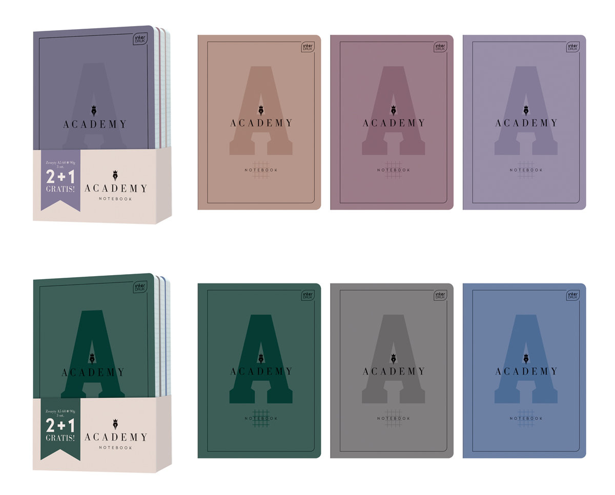 Academy to kolekcja papiernicza premium stworzona z myślą o uczniach i studentach, którzy cenią sobie styl, jakość produktu i komfort pisania. Nasze produkty Academy powstały z myślą o każdym detalu – grube kartki 90 g, miłe w dotyku i eleganckie wykończenie okładki czy zaokrąglone rogi zagwarantują najwyższą przyjemność ich użytkowania. Dzięki szerokiemu i różnorodnemu asortymentowi Academy każdy znajdzie dla siebie zeszyt, kołozeszyt czy brulion w idealnym dla siebie formacie.