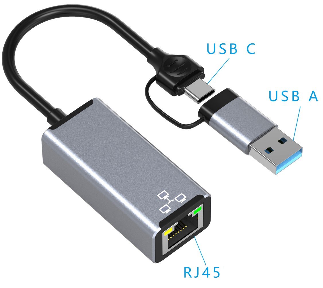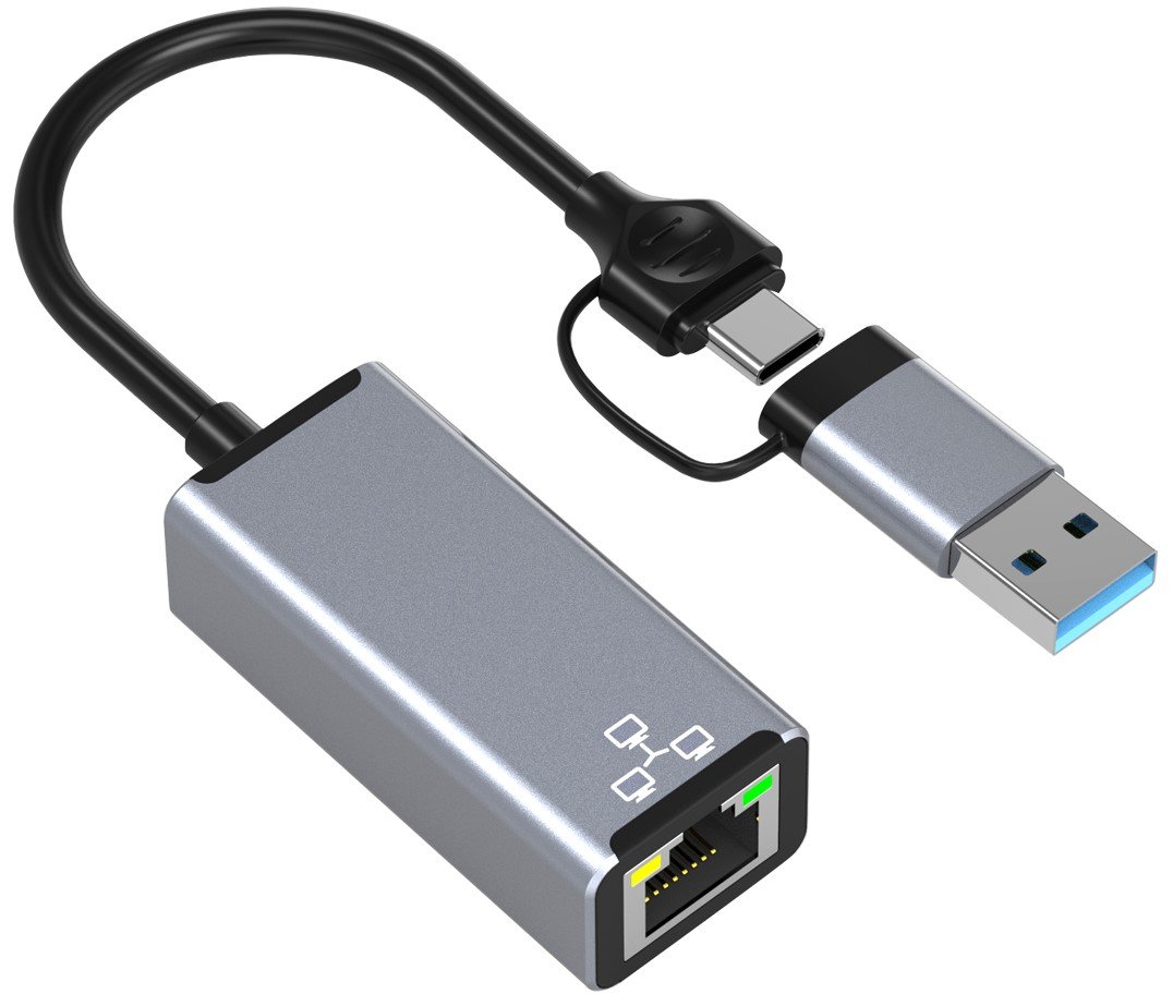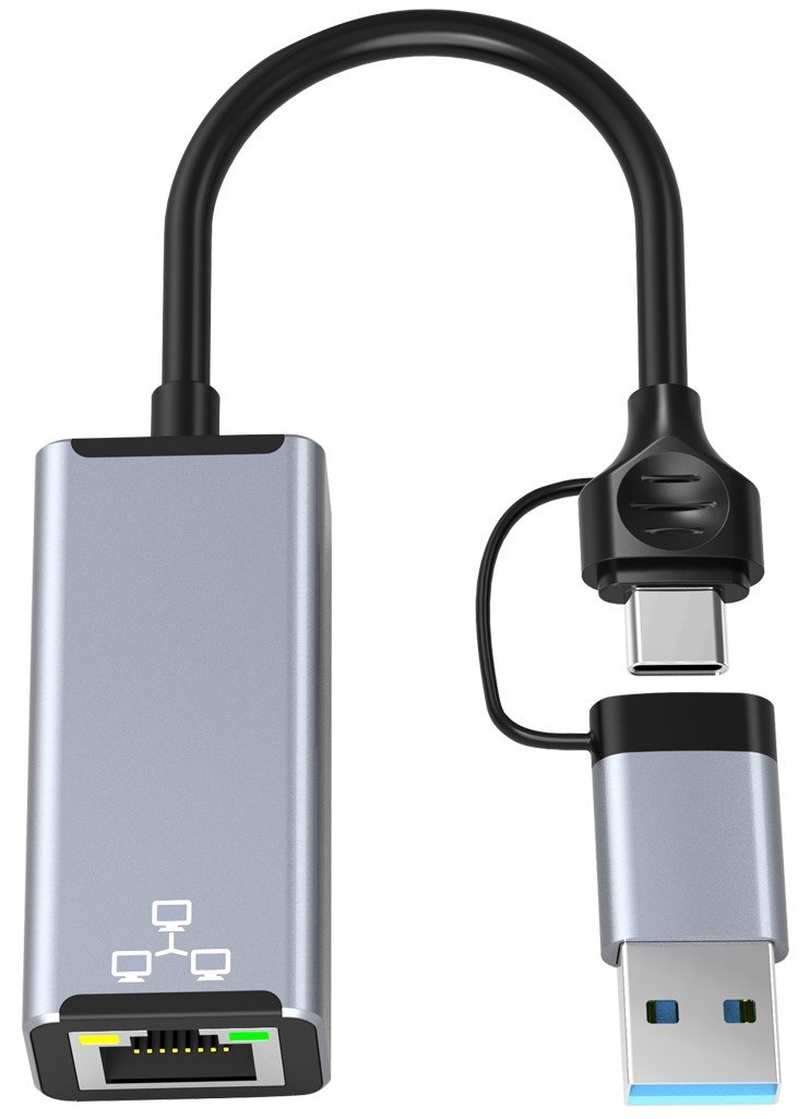 | Nazwa: | Zewnętrzna karta sieciowa LAN Ethernet RJ45 USB C / USB A, 2 w 1 1000Mbps |