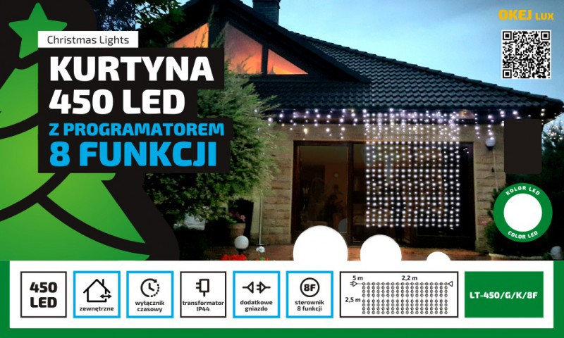prezentuje się bardzo efektownie charakteryzuje się solidnością wykonania rodzaj: kurtyna przeznaczenie: na zewnątrz – IP44 ilość punktów świetlnych: 450 rodzaj źródła światła: LED długość / wymiary ...