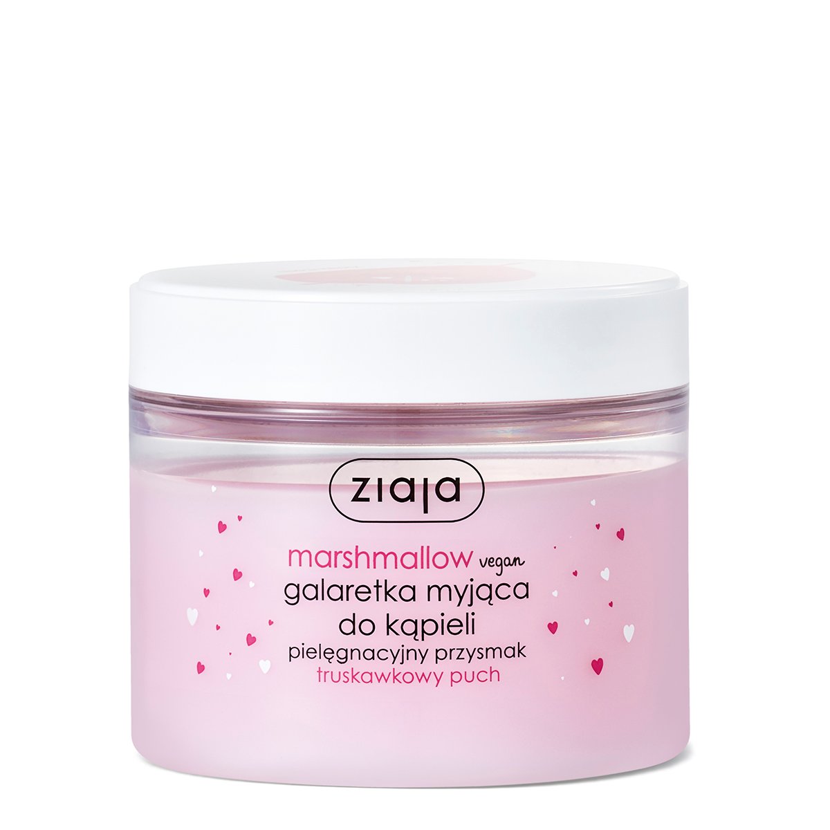 Ziaja Marshmallow, galaretka myjąca do kąpieli - Drżąca galaretka o kultowym zapachu pianek marshmallow. Zapewnia pielęgnacyjną kąpiel w ulotnym truskawkowym puchu. Aromatyczny seans pozostawia Twoją skórę smakowicie pachnącą. Pojemność 260 ml.
