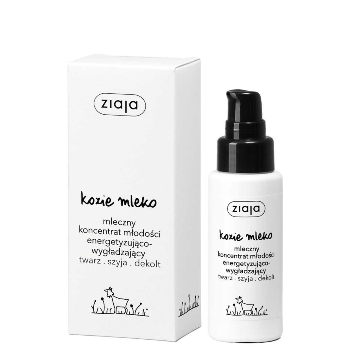 Ziaja Kozie Mleko, mleczny koncentrat młodości energetyzująco-wygładzający -zmniejsza nierówności skóry, przywraca jej elastyczność, pojemność 50 ml.