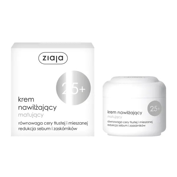 Ziaja 25+, krem nawilżający, matujący - zmniejsza widoczność porów, redukuje wydzielanie sebum, działa matująco, pojemność 50 ml.
