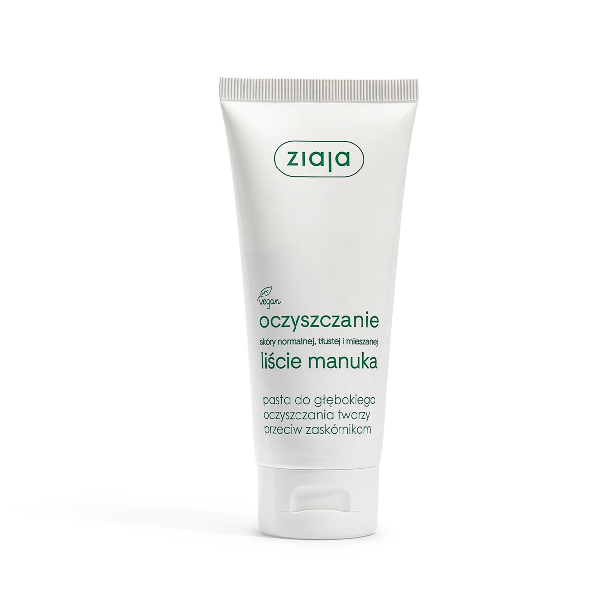Ziaja Liście Manuka-Oczyszczanie, pasta do głębokiego oczyszczania twarzy - redukuje niedoskonałości, złuszcza martwy naskórek, usuwa nadmiar sebum, oczyszcza i pielęgnuje, pojemność 75 ml.