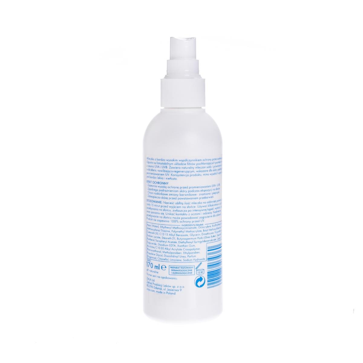 Mleczko z bardzo wysokim współczynnikiem ochrony przeciwsłonecznej. Oparte na fotostabilnym układzie filtrów pochłaniających promieniowanie z pasma UVA i UVB. Zawiera naturalny mleczan sodu i prowitaminę B5 o działaniu nawilżająco-regenerującym, wskazane dla skóry podrażnionej promieniowaniem UV. Konsystencja produktu jest bardzo lekka i nietłusta. Zaleca się stosowanie kilku warstw oraz częste powtarzanie aplikacji.