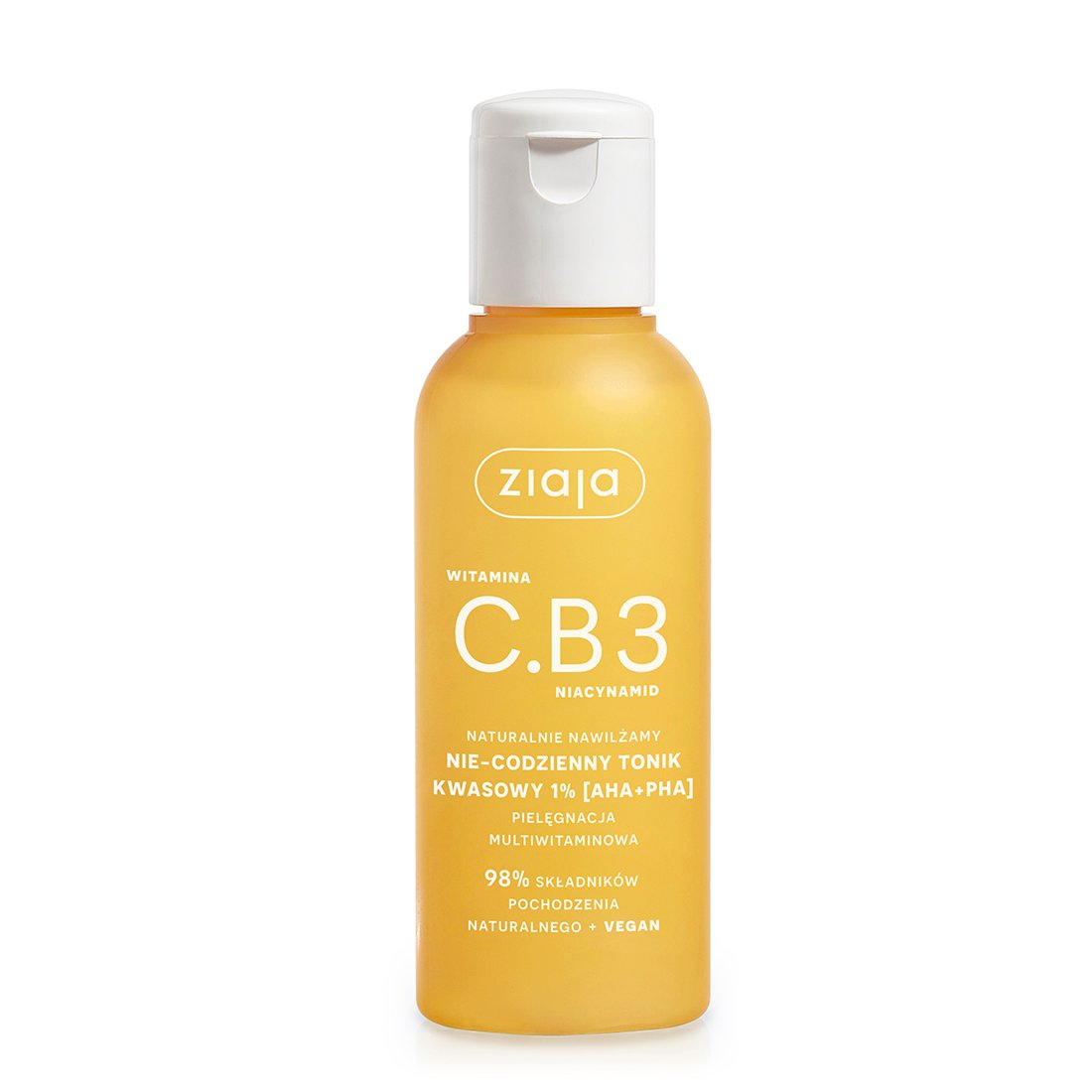 Ziaja Witamina C.B3 Niacynamid - niecodzienny tonik kwasowy 1% [AHA+PHA] doskonale oczyszcza i delikatnie złuszcza naskórek.