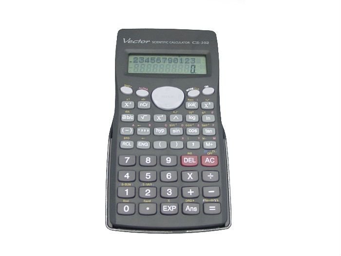 Kalkulator naukowy, Vector, CS-102 kalkulator kode modelu: CS-102 posiada: dwuliniowy wyświetlacz, 244 funkcji: obliczenia na ułamkach zwykłych; obliczenia stopni , minut , sekund; funkcje ...