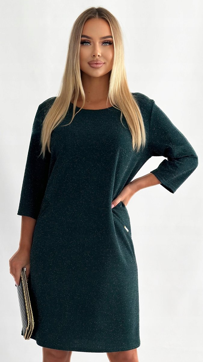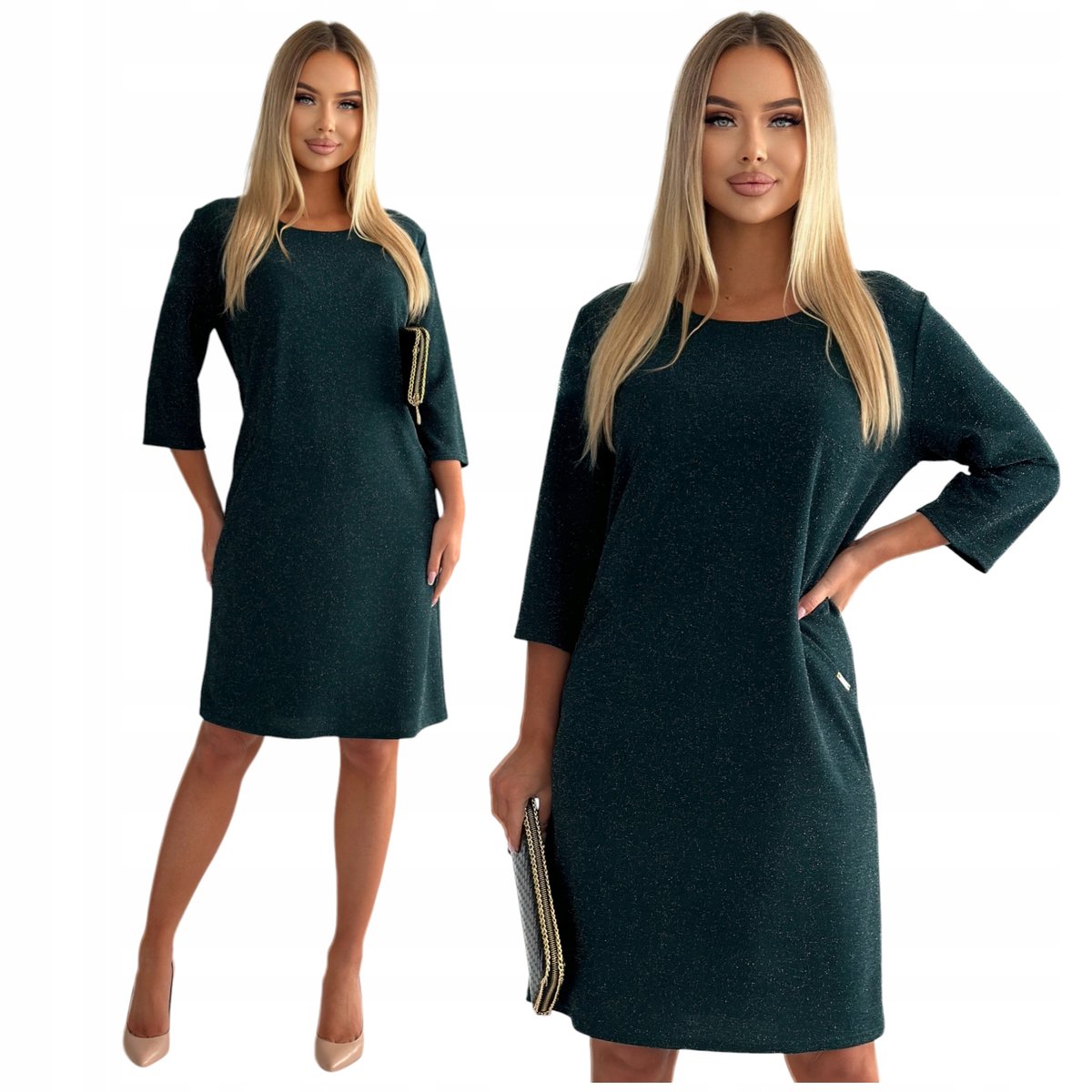 ZIELONA KLASYCZNA PROSTA ŚWIECĄCA SUKIENKA ROZMIAR M
