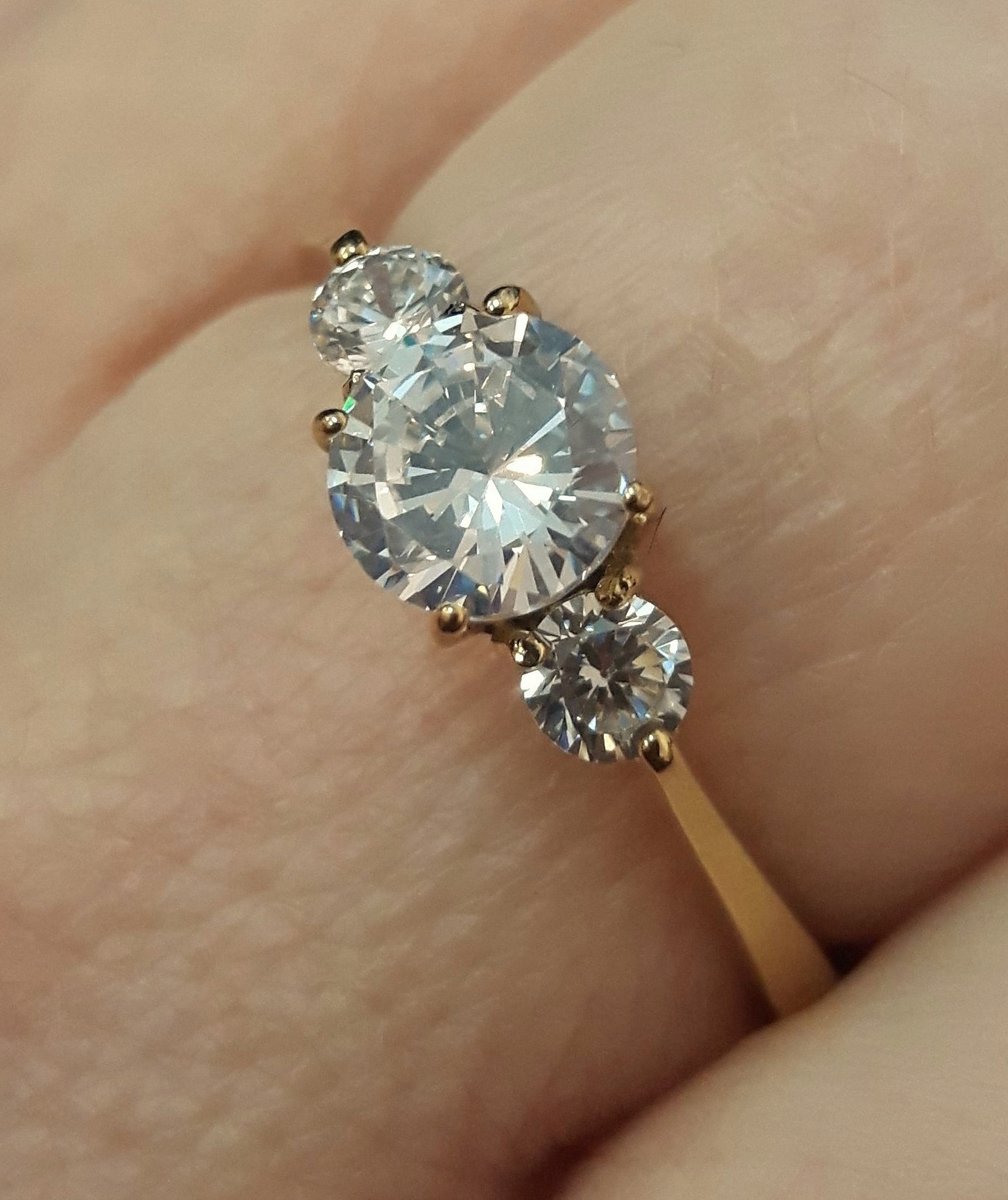 Cyrkonia AAA: 5 mm oraz 2mm (ma niesamowity blask, nawet wprawni złotnicy nie są w stanie gołym okiem odróżnić jej od prawdziwego diamentu)
