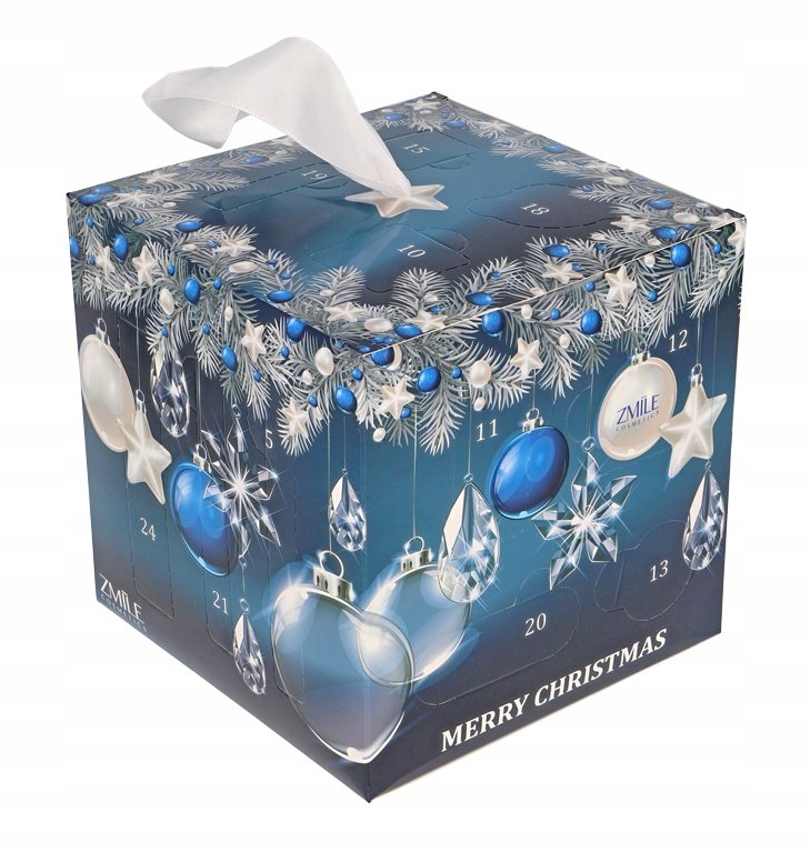 TYP: KALENDARZ ADWENTOWYMARKA: ZMILEMODEL: 240406RODZAJ: DAMSKIWYMIARY: (cm) 15 x 15 x 15SKŁAD ZESTAWU:8 cieni do powiekróżrozświetlacz2 pomadki3 błyszczyki w kremie2 kredki do oczukonturówka do ust2