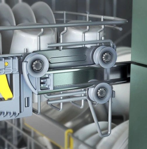 Lepsze rezultaty zmywania z wykorzystaniem WaterJet Clean™. Nowy rotujący podwójny system dysz pozwala na jeszcze dokładniejsze zmywanie i dotarcie nawet do trudno dostępnych elementów naczyń. Dwa ramiona z oddzielnym strumieniem wody obracające się w różnych kierunkach umożliwiają dotarcie nawet do trudno dostępnych miejsc i usunięcie nawet silnych zabrudzeń w naczyniach o nietypowych kształtach.