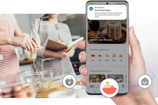 Optymalne zmywanie nawet najbrudniejszych naczyń bez wysiłku. SmartThings Cooking* wskazuje optymalnytryb zmywania w oparciu o przepisy które były ostatnio wykorzystywane. Dane zebrane są z płyty indukcyjnej,piekarnika oraz mikrofalówki aby jak najlepiej dobrać tryb zmywania do metody gotowania oraz składników któebyły przygotowane. Np. po przygotowaniu lasagne zaproponuje tryb intensywny aby domyć resztki powypiekanym daniu.