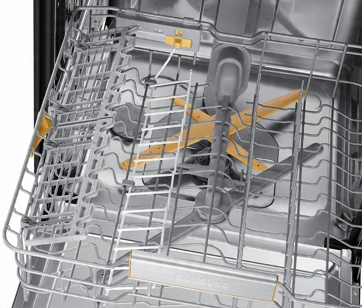 Zmywarka SAMSUNG DW60DG790B00U1 to zaawansowane urządzenie do pełnej zabudowy, które łączy w sobie wysoką efektywność energetyczną z nowoczesnymi funkcjami. Dzięki klasie energetycznej A, zmywarka zużywa mniej energii i wody, co przekłada się na oszczędności w domowym budżecie. Technologia WaterJet Clean zapewnia intensywne czyszczenie naczyń dzięki podwójnym ramionom myjącym, które obracają się w przeciwnych kierunkach, gwarantując dokładne mycie nawet mocno zabrudzonych garnków i patelni. Zmywarka jest wyposażona w funkcję SmartThings, która umożliwia zdalne sterowanie i monitorowanie urządzenia za pomocą aplikacji na smartfona. Dzięki temu można optymalizować cykle zmywania, zmniejszać zużycie energii oraz diagnozować i rozwiązywać ewentualne problemy. Tryb AI Energy Mode pozwala na oszczędzanie energii, zmniejszając jej zużycie nawet o 23%. Funkcja Auto Open automatycznie otwiera drzwi po zakończeniu cyklu, co poprawia efektywność suszenia naczyń. Dodatkowo, zmywarka posiada InfoLight, czyli światło informujące o pracy urządzenia, widoczne na podłodze, oraz system Aqua Stop, który chroni przed zalaniem, wyłączając dopływ wody w przypadku wykrycia wycieku. Wnętrze zmywarki można dostosować do różnych rozmiarów naczyń dzięki regulowanym kolcom w górnym koszu, co umożliwia optymalne ułożenie naczyń i maksymalne wykorzystanie przestrzeni.