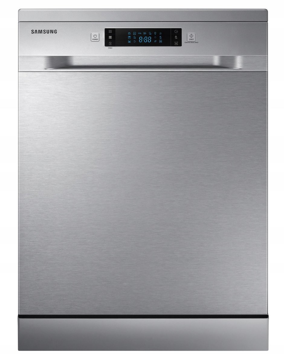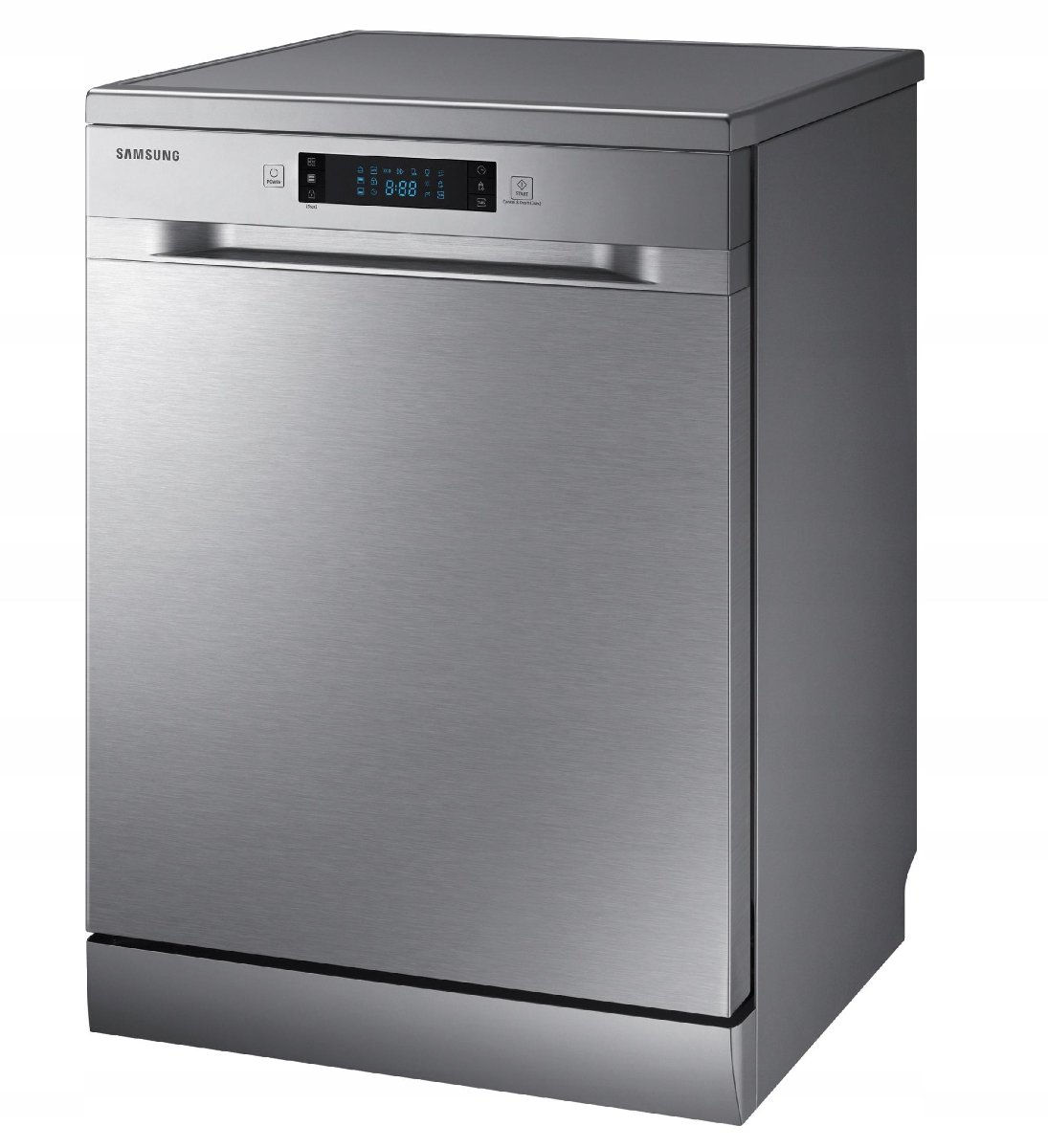 Zmywarka Samsung DW 60M6050FS 14 kpl. 5 programów Zmywarka wolnostojąca o szerokości 60 cm i pojemności 14 kompletów naczyń. Wyposażona w 5 programów zmywania, funkcję dezynfekcji naczyń i regulację