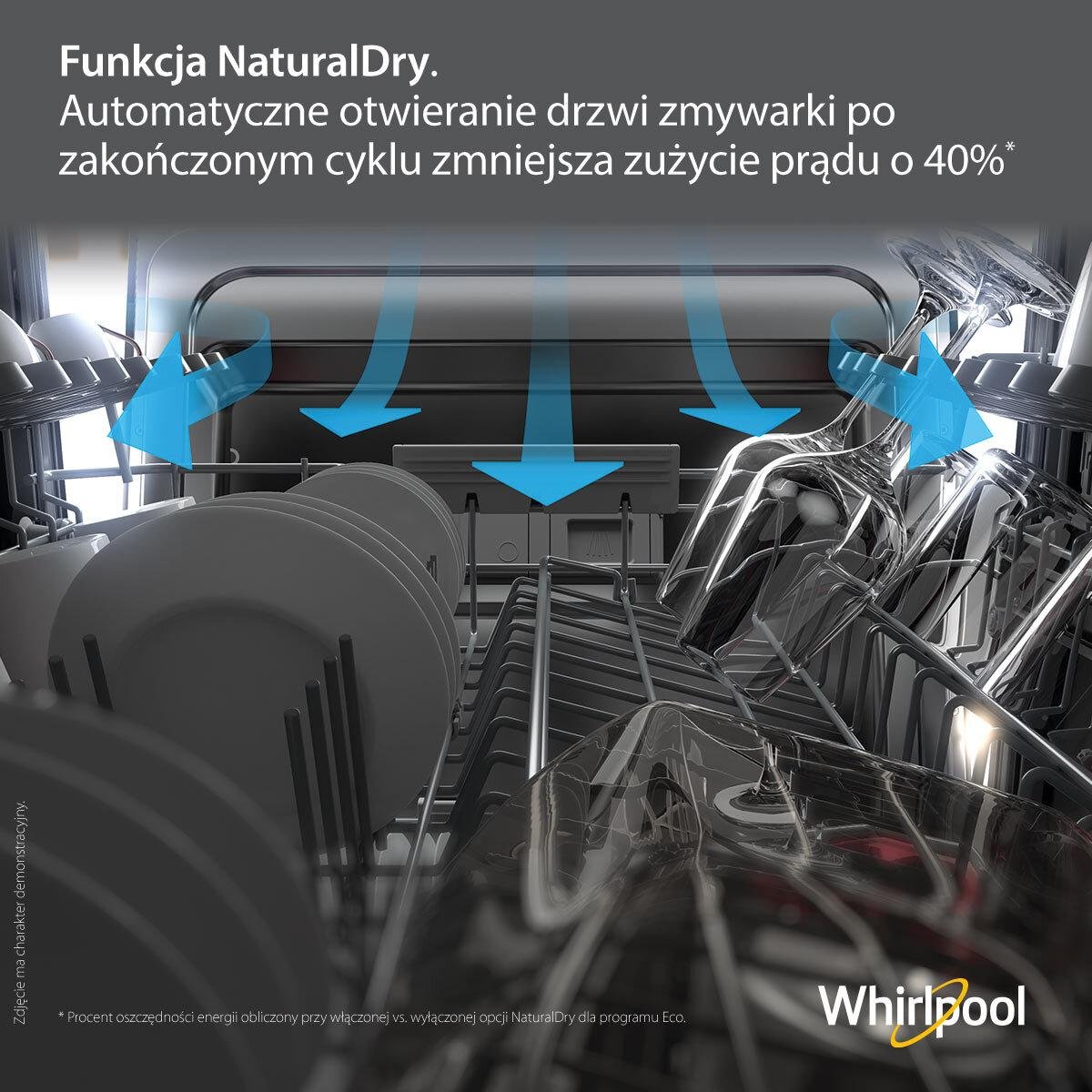 NaturalDry to innowacyjna funkcja, która zapewnia doskonałe suszenie naczyń bez konieczności dodatkowego zużycia energii. Dzięki automatycznemu otwarciu drzwi zmywarki, powietrze zewnętrzne może swobodnie krążyć wewnątrz urządzenia, co skutkuje szybszym i skuteczniejszym procesem suszenia. Dodatkowo, dzięki temu rozwiązaniu można zaoszczędzić do 40% energii elektrycznej, co przekłada się na niższe rachunki za prąd i mniejsze obciążenie dla środowiska.