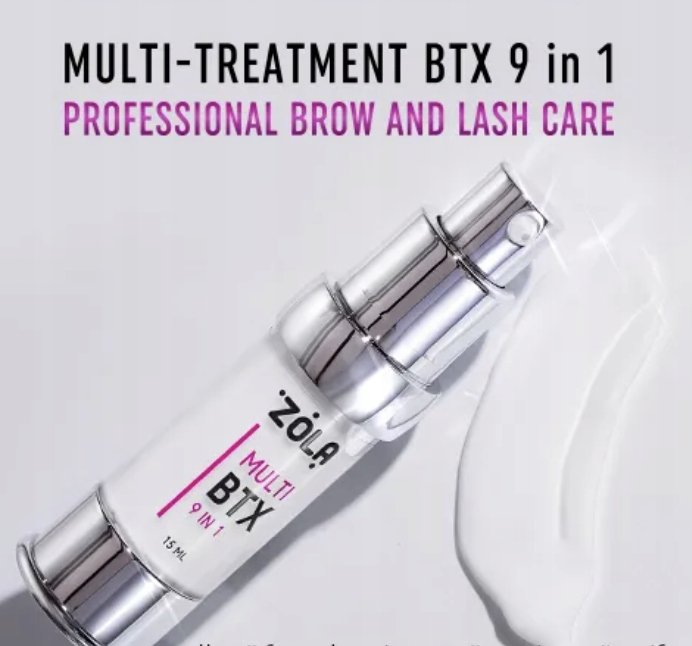 ZOLA Multi BTX 9 in 1 15 ml to innowacyjny preparat, który zapewnia intensywną regenerację brwi i rzęs. Formuła bogata w składniki aktywne dogłębnie odżywia, wzmacnia i odbudowuje strukturę włosa. Dzięki kompleksowemu działaniu Multi BTX 9 in 1 przywraca brwiom i rzęsom zdrowy wygląd, naturalną elastyczność oraz piękny blask.