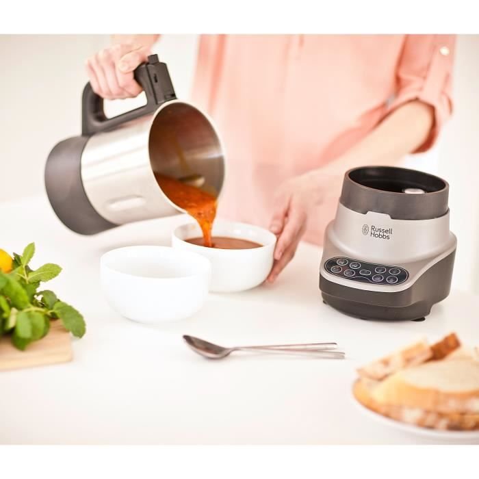 Dzięki Mikserowi stojącemu z funkcją gotowania "Soup & Blend” Russella Hobbsa, zdrowe i pyszne zupy są przygotowywane za naciśnięciem jednego przycisku: napełnij Soup & Blend składnikami, wybierz jeden z ośmiu programów i rozpocznij proces.